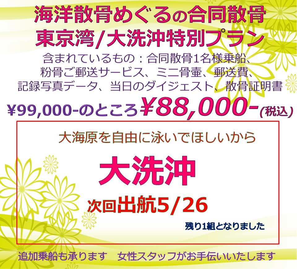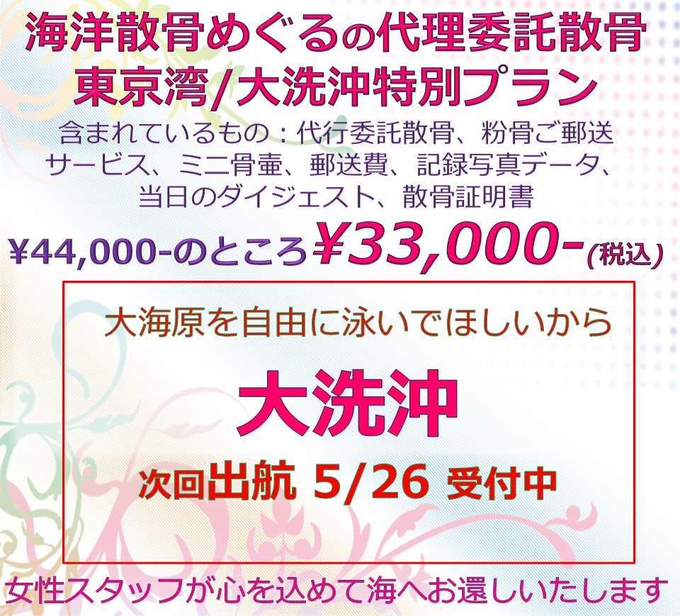 - 10月22日の合同散骨代行委託散骨は延期となりました
